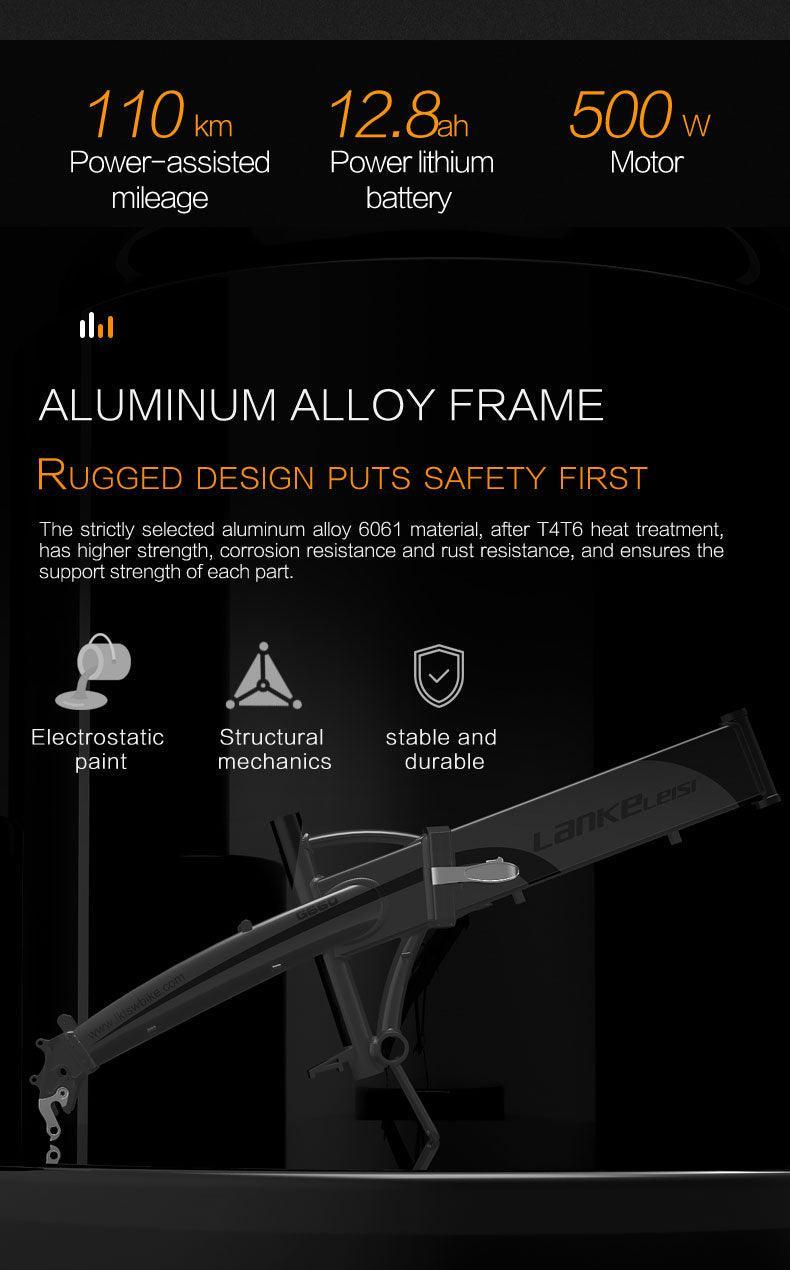 48 V 12,8 Ah Stromversorgung 18650 Lithium-Akkupack, integriertes Rahmendesign IP54-Wasserdichtigkeit, doppelter Schutz, starke Leistung, immer stabil. Rein elektrisch kann 45 km erreichen, unterstütztes Fahren kann 110 km erreichen, ausreichende Leistungsabgabe zum Fahren und Freeriden.