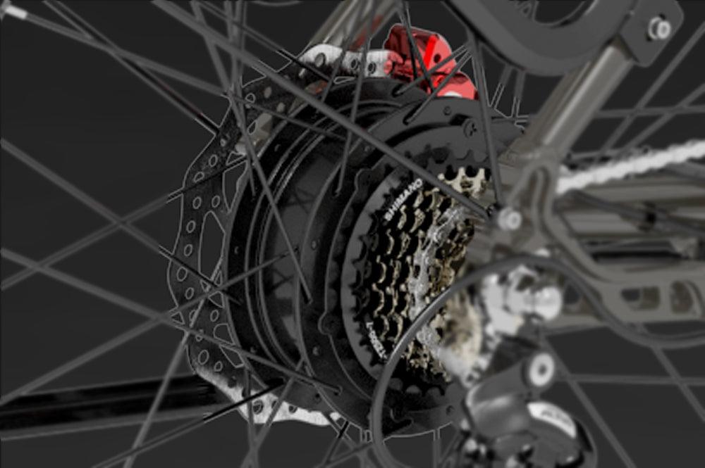 Dieses neue und verbesserte Elektrofahrrad ist mit einem komfortablen, geräumigen und robusten Aluminium-Gepäckträger ausgestattet, der sich sehr gut für Fahrten mit Ihren geliebten Haustieren oder zum Mitnehmen Ihrer Verwandten und Freunde eignet. Auch praktisch, um alles Wichtige mitzunehmen, egal ob Sie zu einem Picknick aufbrechen oder von der Arbeit nach Hause fahren! Die integrierten Schutzbleche schützen Sie vor den Elementen, egal ob bei Regen oder Sonnenschein.