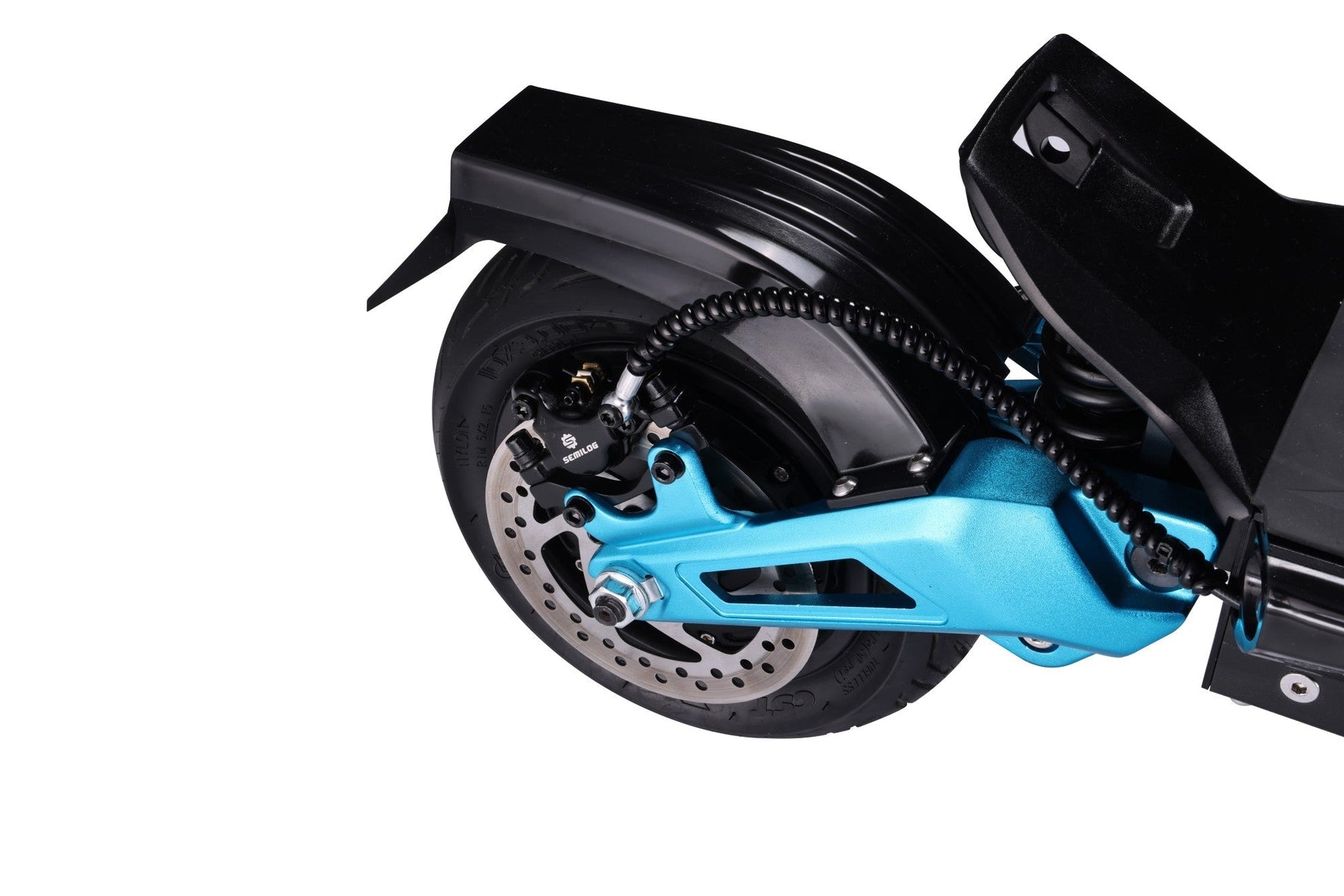 Sicherheit steht beim MW-Tiger 9 Pro an erster Stelle. Der Scooter ist mit Vorder- und Hinterrad-Scheibenbremsen sowie einem elektronischen Bremssystem ausgestattet, das für eine kontrollierte und präzise Bremsleistung sorgt. Die Kombination dieser Bremstechnologien gewährleistet, dass du auch bei hohen Geschwindigkeiten sicher und stabil zum Stehen kommst.