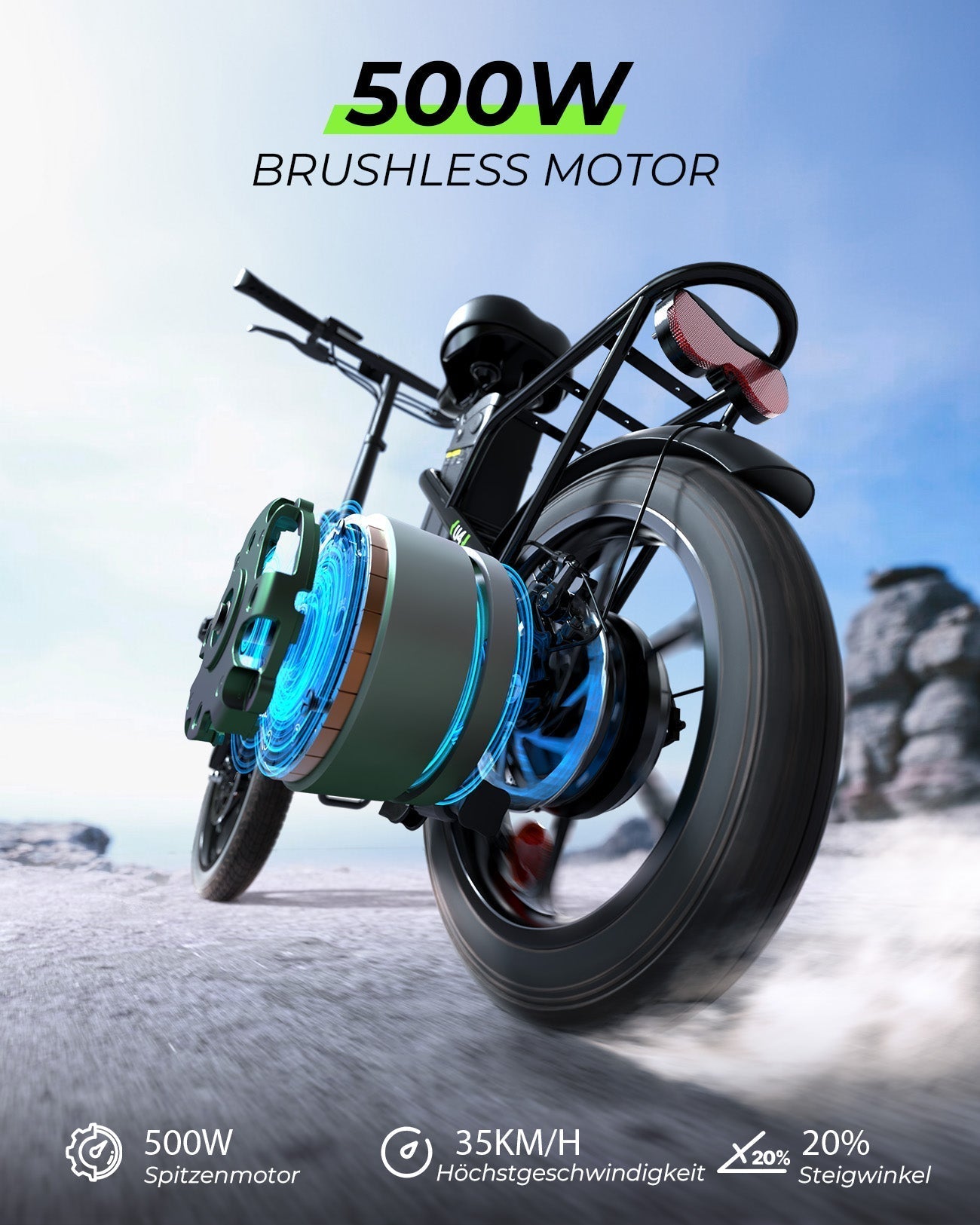 250W (PEAK 500W) Motor, starke Leistung, unterstützt Steigungen bis zu 20%.
